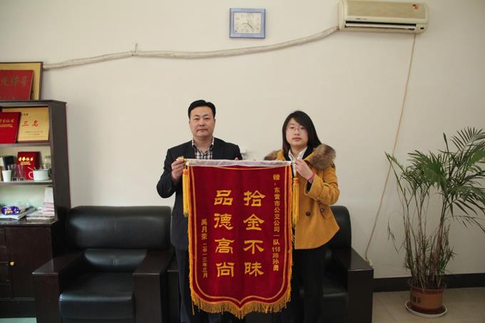4月9日上午,康源律師事務(wù)所的禹月榮女士拿著一面寫有“拾金不昧、品德高尚”的錦旗來到市公交公司汽車一隊,感謝車隊駕駛員孫勇師傅的高尚品德。據(jù)車隊了解得知,4月4日,禹月榮女士乘坐孫勇師傅駕駛的118路去上班,上班以后發(fā)現(xiàn)裝有重要文件的拎包不見了,她心急如焚,當(dāng)時就癱坐在地上,因為包里面裝有五個檔案袋,卷中裝有重要的訴訟材料,其中很多資料無法彌補,后果不堪設(shè)想。