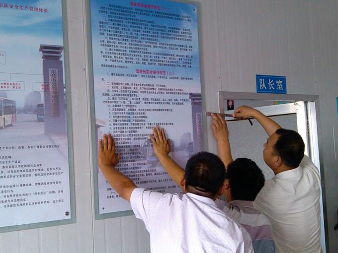 為了進一步落實“交通四化管理”工作要求,推進“五城聯(lián)動”工作開展,完善安全生產(chǎn)管理制度,健全安全生產(chǎn)管理體系,提升安全生產(chǎn)管理水平,近日,市公交公司根據(jù)工作實際將車隊隊長、安全副隊長、安全員的崗位職責(zé)和駕駛員安全操作規(guī)范、駕駛員管理規(guī)定、車隊安全生產(chǎn)管理體系以及道路旅客運輸企業(yè)安全管理規(guī)范等規(guī)章制度進行了重新梳理和完善,并制作成展板安裝在各車隊醒目位置供車隊全體干部職工進行學(xué)習(xí)和交流。這些規(guī)章制度的進一步完善,不僅使公司駕駛員進一步樹立了安全行車意識,規(guī)范了安全操作規(guī)程,還使公司安全生產(chǎn)管理人員進一步明確了自己的工作職責(zé),規(guī)范了安全管理流程,為公司安全生產(chǎn)管理工作的穩(wěn)步前進奠定了基礎(chǔ)。