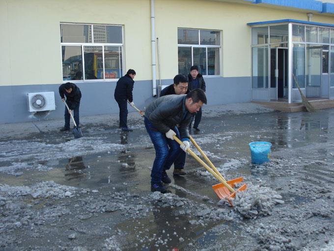 在清雪過程中,同志們不畏嚴寒,破冰除雪,干勁高漲。在大家的共同努力下,僅用兩個小時便將車隊門前積雪清掃干凈,用自己的勞動為車隊全體人員的安全出行提供方便,真正以實際行動落實十八大精神,為營造和諧公交貢獻自己的力量。