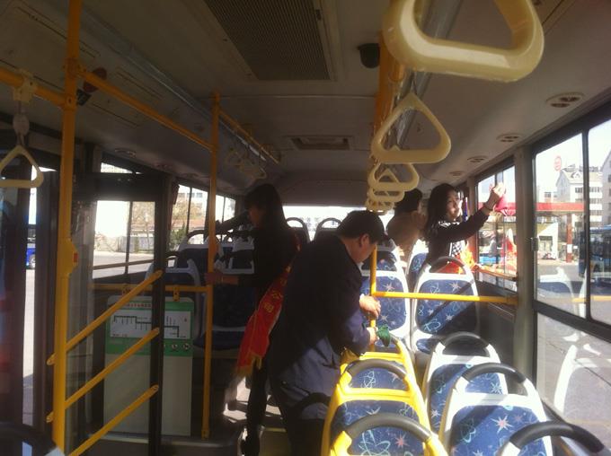 來(lái)自東營(yíng)市職業(yè)學(xué)院會(huì)計(jì)學(xué)院的22名大學(xué)生和汽車(chē)一隊(duì)職工共計(jì)34人,分成兩個(gè)小組,一組乘坐103路公交車(chē)幫助疏導(dǎo)乘客,為特需乘客服務(wù);一組幫助駕駛員打掃車(chē)輛衛(wèi)生,清潔服務(wù)設(shè)施。本次活動(dòng)受到乘客們的廣泛好評(píng),同時(shí)也提升了大家的奉獻(xiàn)意識(shí)和社會(huì)責(zé)任感,進(jìn)一步弘揚(yáng)了雷鋒精神,培養(yǎng)了大家關(guān)愛(ài)他人、服務(wù)社會(huì)的優(yōu)良品質(zhì)。