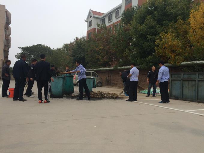 衛(wèi)生大掃除中,他們或三人一伙,或五人一組,有的負責修剪參差不齊的綠化帶,有的負責清理枯黃的雜草,有的負責拿著垃圾袋拾撿煙頭,有的負責清掃被風卷到墻角的垃圾,有的負責裝卸和拖運垃圾箱,一個個忙的滿頭大汗,即使飛揚的塵土沾滿了衣服也全然不顧,令人為之動容。