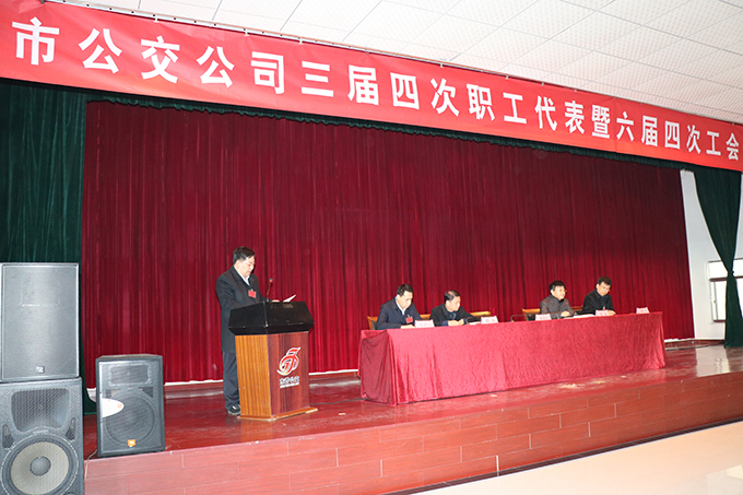 2月16日上午,東營(yíng)市公交公司三屆四次職工代表暨六屆四次工會(huì)會(huì)員代表大會(huì)在公司南大會(huì)議室隆重召開。會(huì)議由公司副經(jīng)理趙龍主持,公司黨委書記、經(jīng)理朱新民,黨委副書記劉海,副經(jīng)理孫紅光,副經(jīng)理景洪培出席了本次會(huì)議,本次大會(huì)共有正式代表94人,實(shí)到92人,請(qǐng)假2人,列席代表9人。