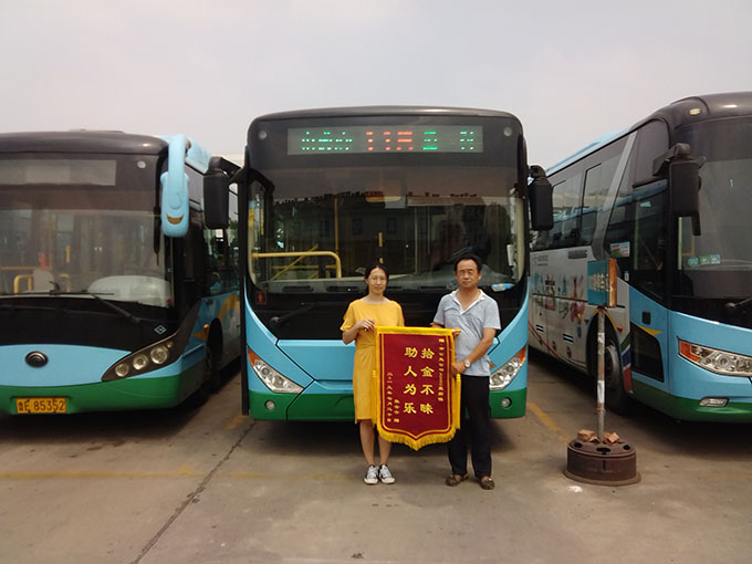 當(dāng)晚,張女士來(lái)到車(chē)隊(duì),車(chē)隊(duì)工作人員核實(shí)情況后,將手機(jī)歸還給張女士。這才有了眼前的一幕,張女士親手將寫(xiě)有“拾金不昧、助人為樂(lè)”的錦旗送到了藍(lán)新啟師傅手中。