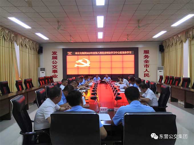 2023年8月26日下午14時30分,市公交集團在辦公樓一樓會議室組織2023年度第八期黨委理論學習中心組集體學習,趙龍同志主持會議并講話,集團公司黨委成員、各支部書記以及學習秘書參加集體學習。