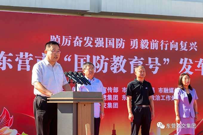 2023年9月14日上午,東營市國防教育號發(fā)車儀式在市公交集團(tuán)隆重舉行。市委宣傳部副部長邱家梅出席儀式并宣布發(fā)車,市交通運輸局黨組成員、副局長戴景鵬致辭,東營軍分區(qū)政治工作處主任王志輝、市融媒體中心副主任趙國防、市城建集團(tuán)黨委副書記張文生、市公交集團(tuán)黨委書記趙龍等參加發(fā)車儀式。