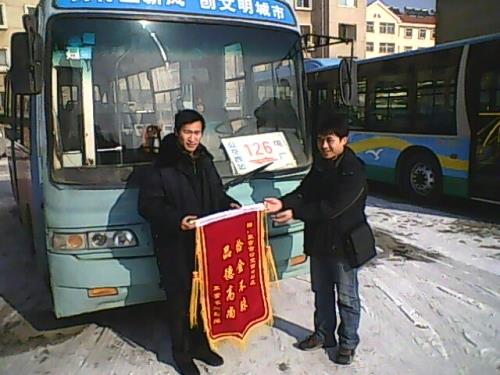 2010年1月6日,東營車網(wǎng)的劉先生手拿寫有“拾金不昧品德高尚”的錦旗,來到市公交公司汽車三隊,要求車隊領導大力表揚126路駕駛員劉波。