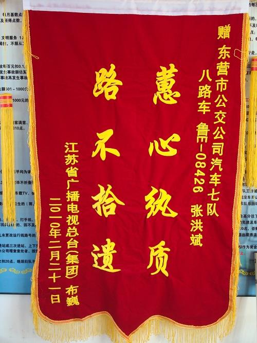 原來,2月20日,初次來東營(yíng)走親訪友的失主布巍小酌后準(zhǔn)備返程,不小心將手提包丟在8路車上,內(nèi)有DV機(jī)、出國(guó)護(hù)照和工作證等物件,年后就準(zhǔn)備出國(guó)的他非常著急。經(jīng)過查詢與汽車七隊(duì)取得聯(lián)系,當(dāng)?shù)弥眯鸟{駛員張洪斌已將失物及時(shí)上交車隊(duì),失主布巍非常感動(dòng),因急于趕回單位出國(guó),沒能當(dāng)面致謝,特寄來錦旗表示謝意。