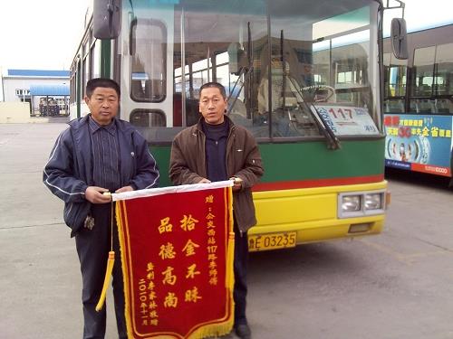 11月17日,家住墾利縣城的李家林先生拿著寫有“拾金不昧、品德高尚”的錦旗來(lái)到了市公交公司汽車三隊(duì)對(duì)李業(yè)縣師傅表示感謝。經(jīng)車隊(duì)了解得知,11月10日汽車三隊(duì)駕駛員李業(yè)縣在運(yùn)行完117路班次后正常清理車廂衛(wèi)生時(shí)發(fā)現(xiàn)了一個(gè)黑色皮包并立即將皮包上交車隊(duì)。車隊(duì)負(fù)責(zé)人通過(guò)現(xiàn)場(chǎng)清點(diǎn),發(fā)現(xiàn)皮包內(nèi)共有現(xiàn)金2600余元,賬單一宗,根據(jù)包里面的信息及時(shí)聯(lián)系到失主李家林。當(dāng)李家林先生看到了失而復(fù)得的錢包時(shí),當(dāng)即拿出200元塞給李業(yè)縣以表示謝意,被李業(yè)縣婉意謝絕?;厝ズ螅罴伊窒壬那榫镁貌荒芷届o,特意制做了錦旗送到車隊(duì),以表達(dá)感激之情,并要求車隊(duì)對(duì)李業(yè)縣師傅這種拾金不昧的優(yōu)良品質(zhì)進(jìn)行表?yè)P(yáng)。李業(yè)縣同志作為剛到公交公司參加工作的新員工,在面對(duì)失主巨額財(cái)物的“誘惑”下,不為利益所動(dòng),秉承和發(fā)揚(yáng)了公交人一貫的高尚品質(zhì),他的所作所為充分展現(xiàn)了一名公交駕駛員應(yīng)有的職業(yè)道德素質(zhì)。