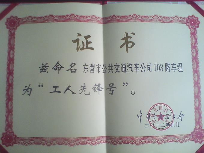 近年來,市公交公司103路車組人員把優(yōu)質(zhì)服務(wù)作為積極奉獻的目標(biāo),視乘客為親人,愛崗敬業(yè),無私奉獻,出色地完成了各項營運生產(chǎn)任務(wù),得到了廣大乘客的一致好評,被親切地稱之為“滿意車”、“放心車”、“安全車”。并先后獲得山東省城建行業(yè)“文明服務(wù)標(biāo)兵”、東營市五一勞動獎?wù)?、東營市“十佳服務(wù)標(biāo)兵”、“市級工人先鋒號”、市文明委授予的“全市十佳文明示范窗口”、省總工會授予的“山東省工人先鋒號”等多項榮譽稱號,展示了公交駕駛員良好的精神風(fēng)貌,營造了和諧文明的社會氛圍。