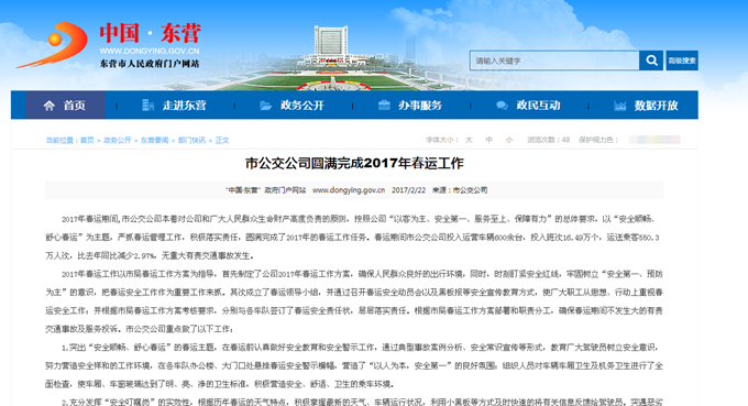 2017年2月22日東營市政府網站報道